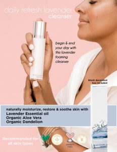 Begin and end your day with this lavender foaming cleanser. Gentle enough to leave even the most sensitive skin feeling refreshed. This cleanser helps naturally moisturize, restore, and soothe skin with Organic Aloe Vera, Organic Dandelion, and Lavender Essential oil.