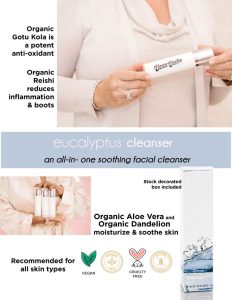 Soothing facial cleanser. Formulated with Organic Dandelion and Organic Aloe to moisturize and soothe skin. Added Organic Reishi reduces inflammation and boosts cellular regeneration. Organic Rosemary acts as a natural antiseptic and Organic Gotu Kola is a potent anti-oxidant, making this a complete all-in-one cleanser.